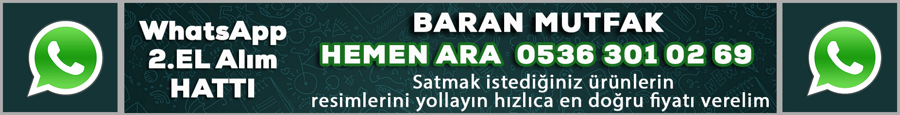 Baran Mutfak Sıfır ve ikinci el Lokanta Malzemelerinizi , ikinci el Pastane Cafe Malzemelerinizi, Kasap ve Kebapçı Malzemelerinizi, Maket Şarküteri Malzemelerinizi değerinden ve Türkiye'nin neresinde olursanız olun gelip adresinizden nakit ödeme ile satın almaktadır. Size bir telefon kadar yakınız.